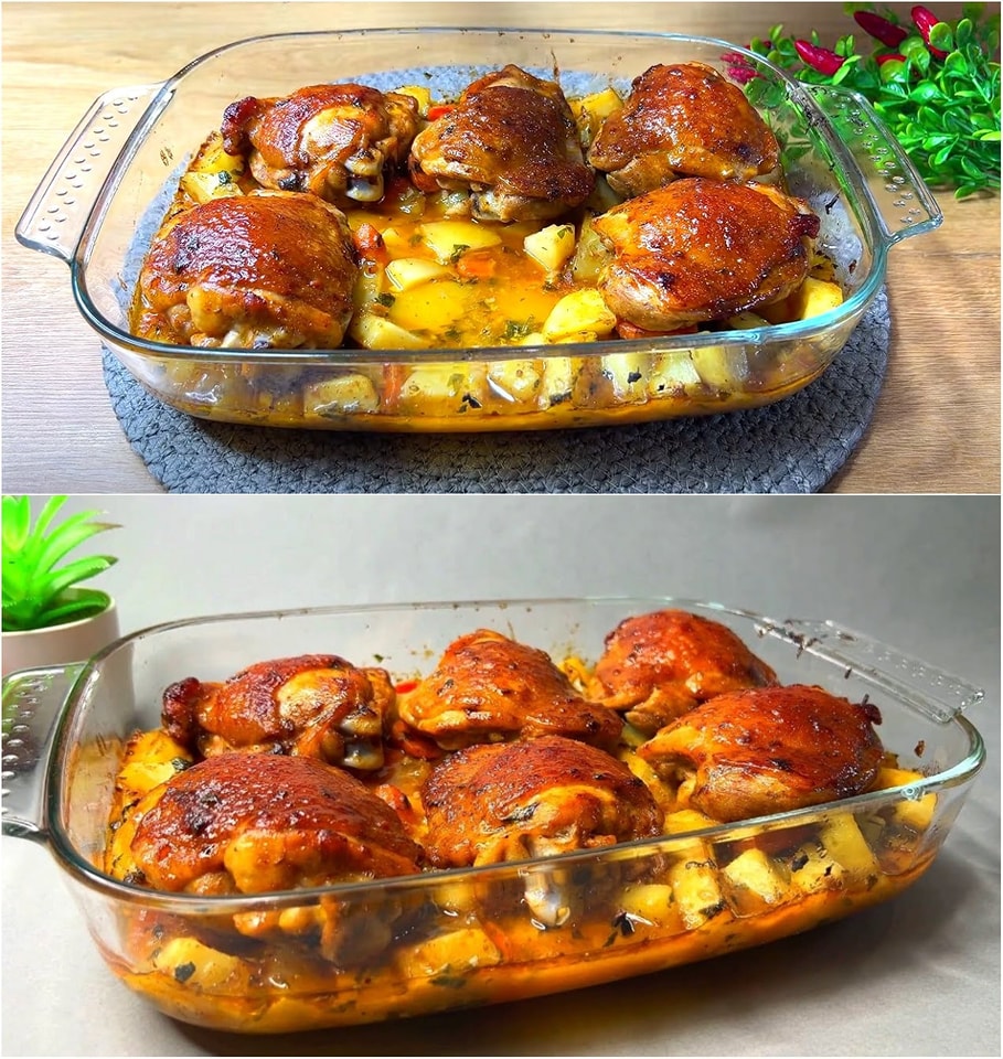 Dit gerecht combineert de rijke, sappige textuur van kippendijen met een overvloed aan verse groenten, wat resulteert in een maaltijd die zowel voedzaam als verleidelijk is. Het recept belichaamt de essentie van eenvoudige, smaakvolle keuken die comfort en gezondheid perfect balanceert.