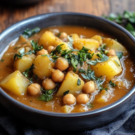 De aardappel- en kikkererwtenstoofpot is een culinaire reis door de smaken van het Midden-Oosten en de Mediterrane keuken. Dit voedzame gerecht combineert de romige textuur van aardappelen met de nootachtige smaak van kikkererwten, gecreëerd met een mix van aromatische kruiden die een waar smaakavontuur belooft.
