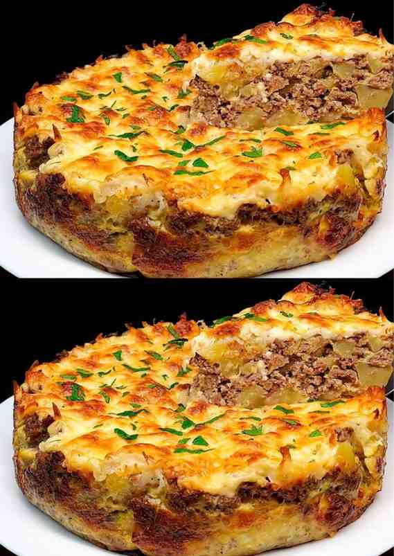 - Bedek het gehakt met de resterende aardappelschijfjes.