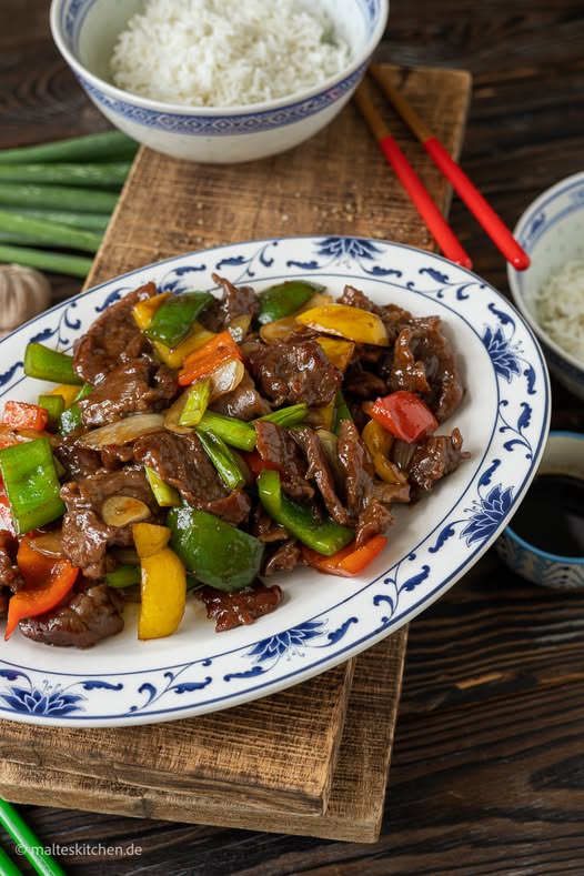 Dit Mongools rundvlees is het beste direct uit de wok te serveren, waarbij de saus nog glanzend en de groenten knapperig zijn. Serveer het gerecht met witte rijst om de heerlijke saus op te kunnen vangen. De combinatie van de malse reepjes rundvlees, knapperige groenten en de zoet-hartige saus maakt dit tot een perfect gerecht voor liefhebbers van de Aziatische keuken.