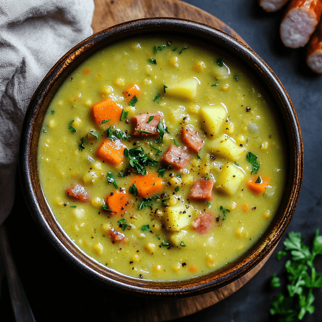 - Traditionele versie: Voeg een gerookte varkenshock toe voor extra diepte.