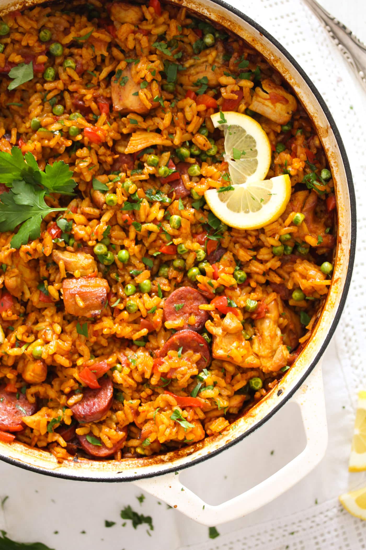 Deze kleurrijke Spaanse klassieker combineert sappige kip, pittige chorizo en saffraan-geparfumeerde rijst in één pan. Perfect voor een gezellig diner of speciale gelegenheid.