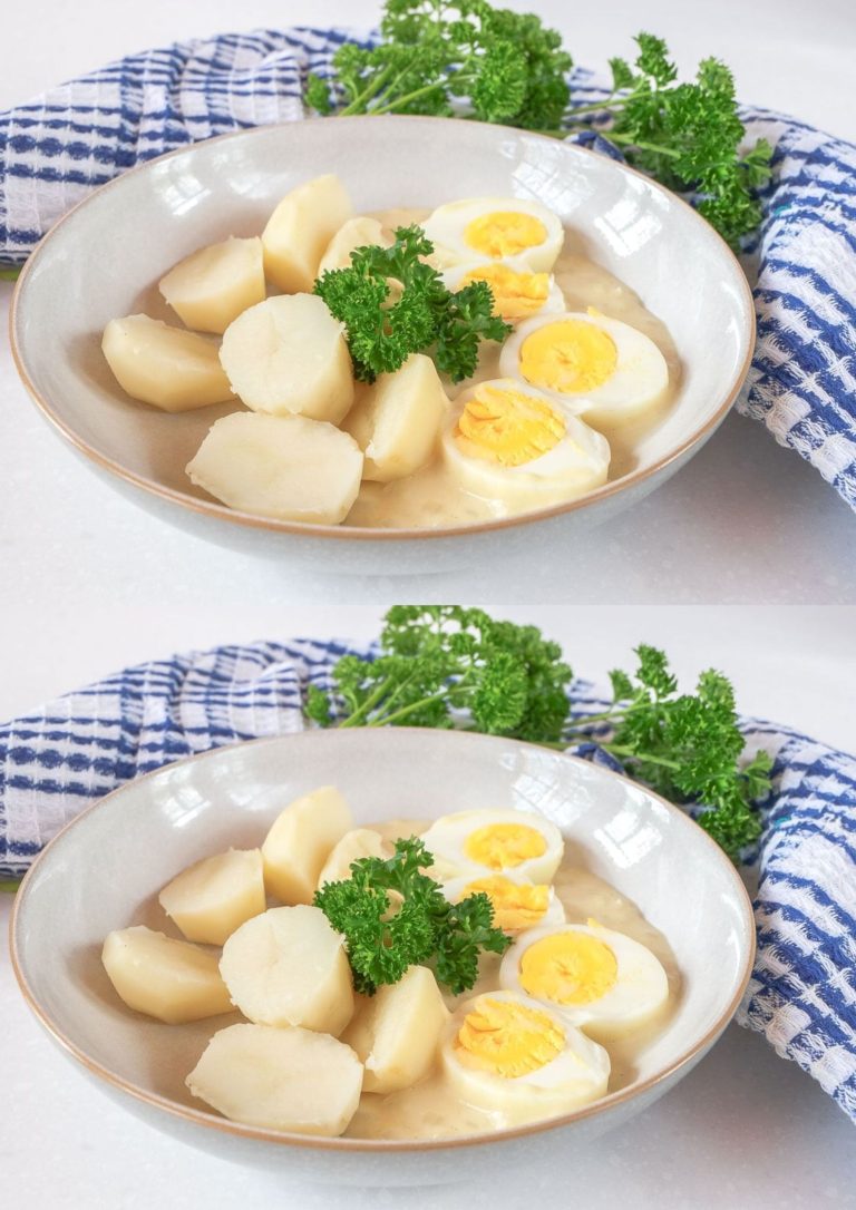 De Duitse Eieren in Mosterdsaus (Eier in Senfsauce) is meer dan alleen een maaltijd – het is een erfenis van eenvoudige, voedzame huiskookkunst. Oorspronkelijk ontstaan als een zuinig gerecht in landelijke keukens, weerspiegelt dit recept de kern van de traditionele Duitse keuken: smaakvol, vullend en bereid met minimale ingrediënten.