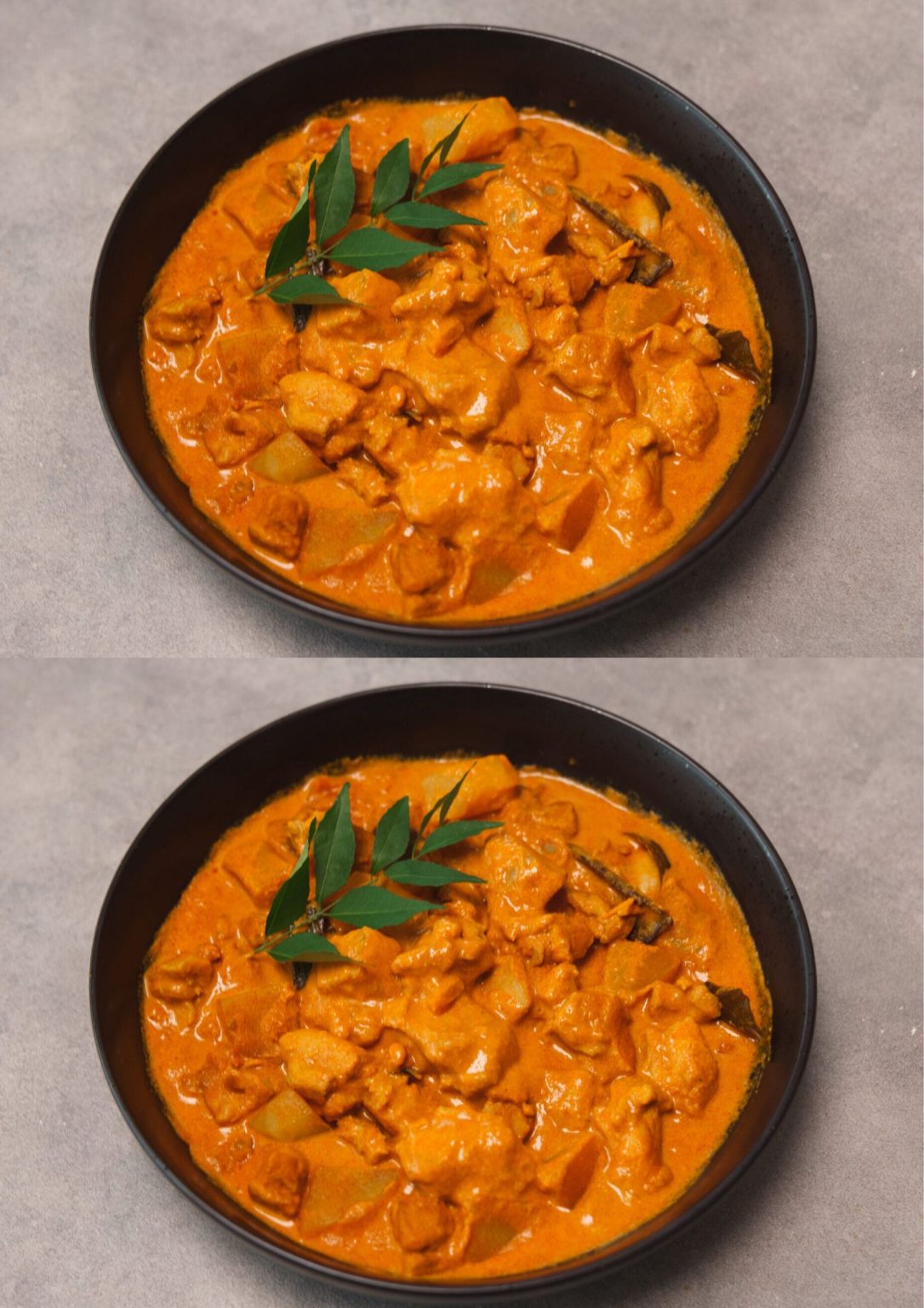 Deze rijke en aromatische Indiase curry combineert de warmte van specerijen met de romigheid van kokosmelk. Dit recept, geïnspireerd door Zuid-Indiase keuken, brengt een perfecte balans tussen kruidige en romige smaken, met malse stukjes kip en zachte aardappelen in een weelderige saus.