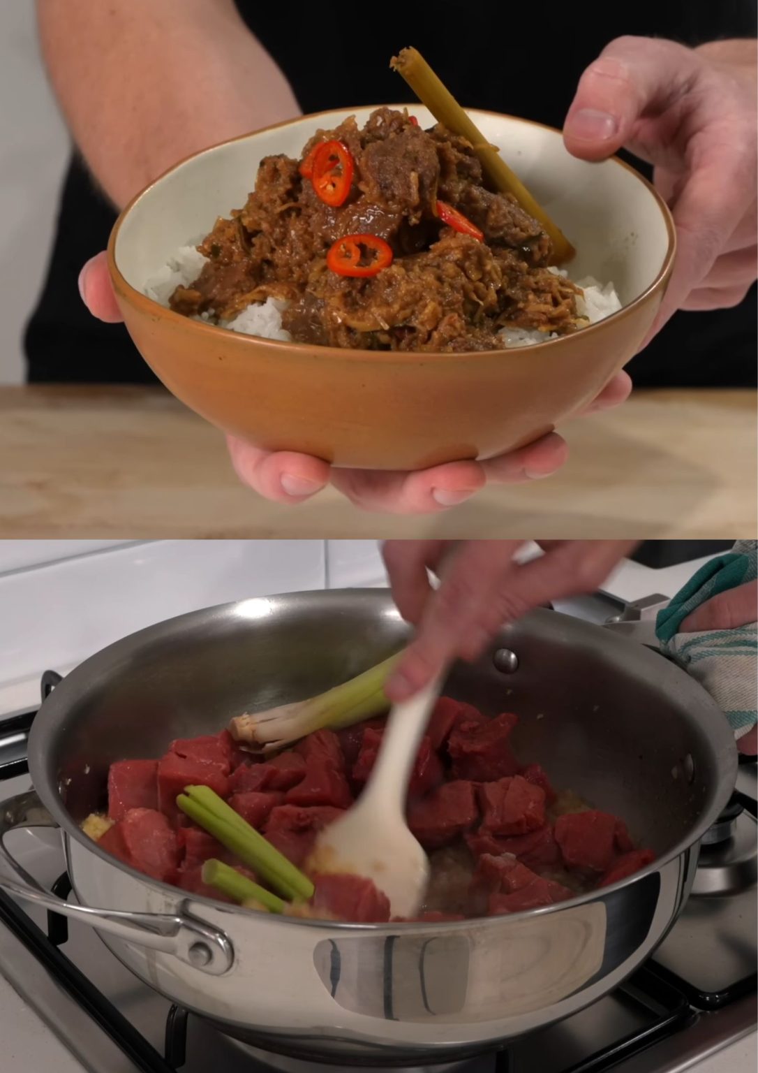 Rendang, oorspronkelijk uit West-Sumatra, is een van Indonesië’s meest geliefde gerechten. Deze versie biedt een toegankelijke benadering van het traditionele recept, waarbij de rijke, complexe smaken behouden blijven. De langzame bereiding zorgt ervoor dat het vlees boterzacht wordt en alle kruiden goed kunnen intrekken.