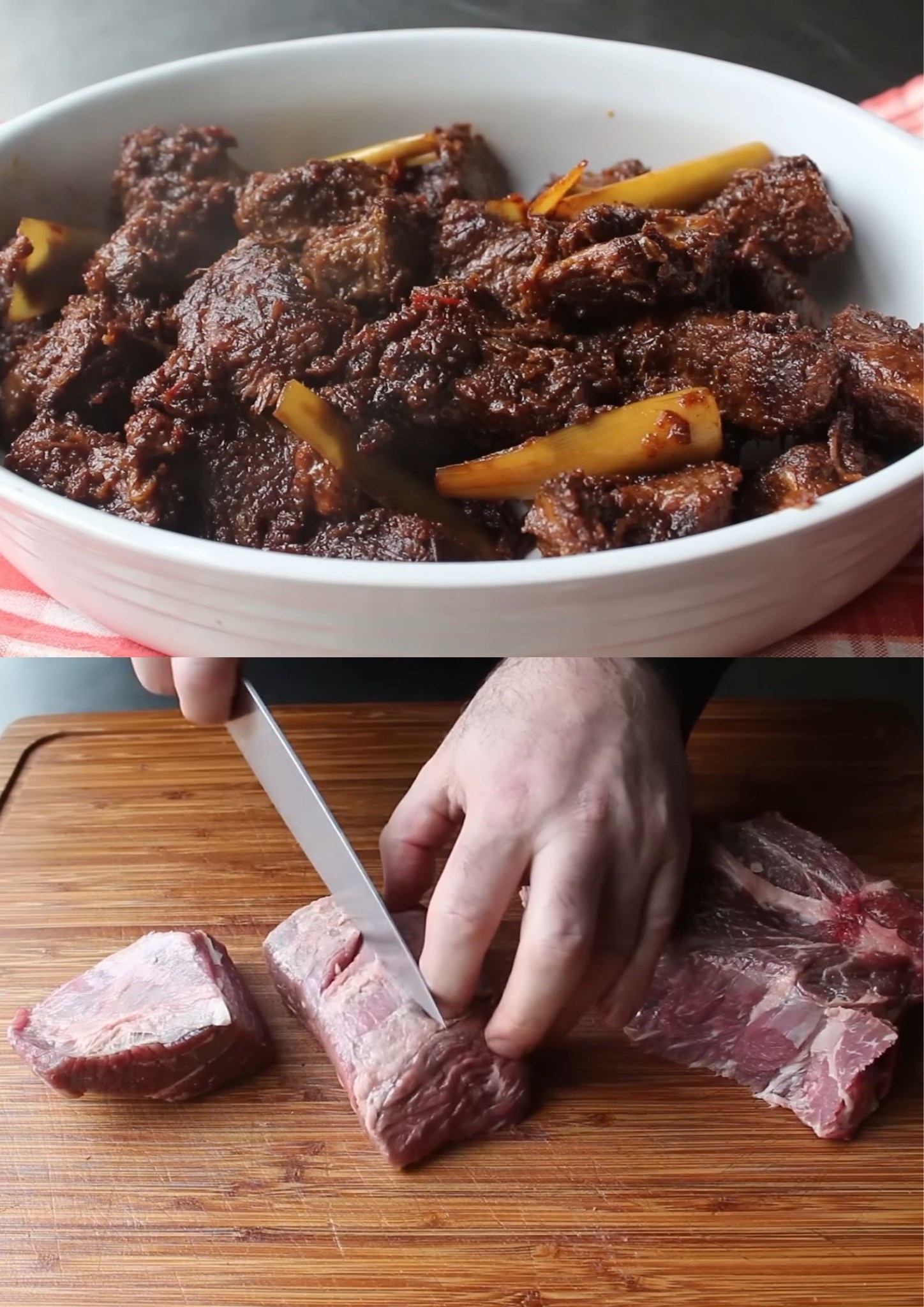 - Snijd rundvlees in blokken van 5-7 cm