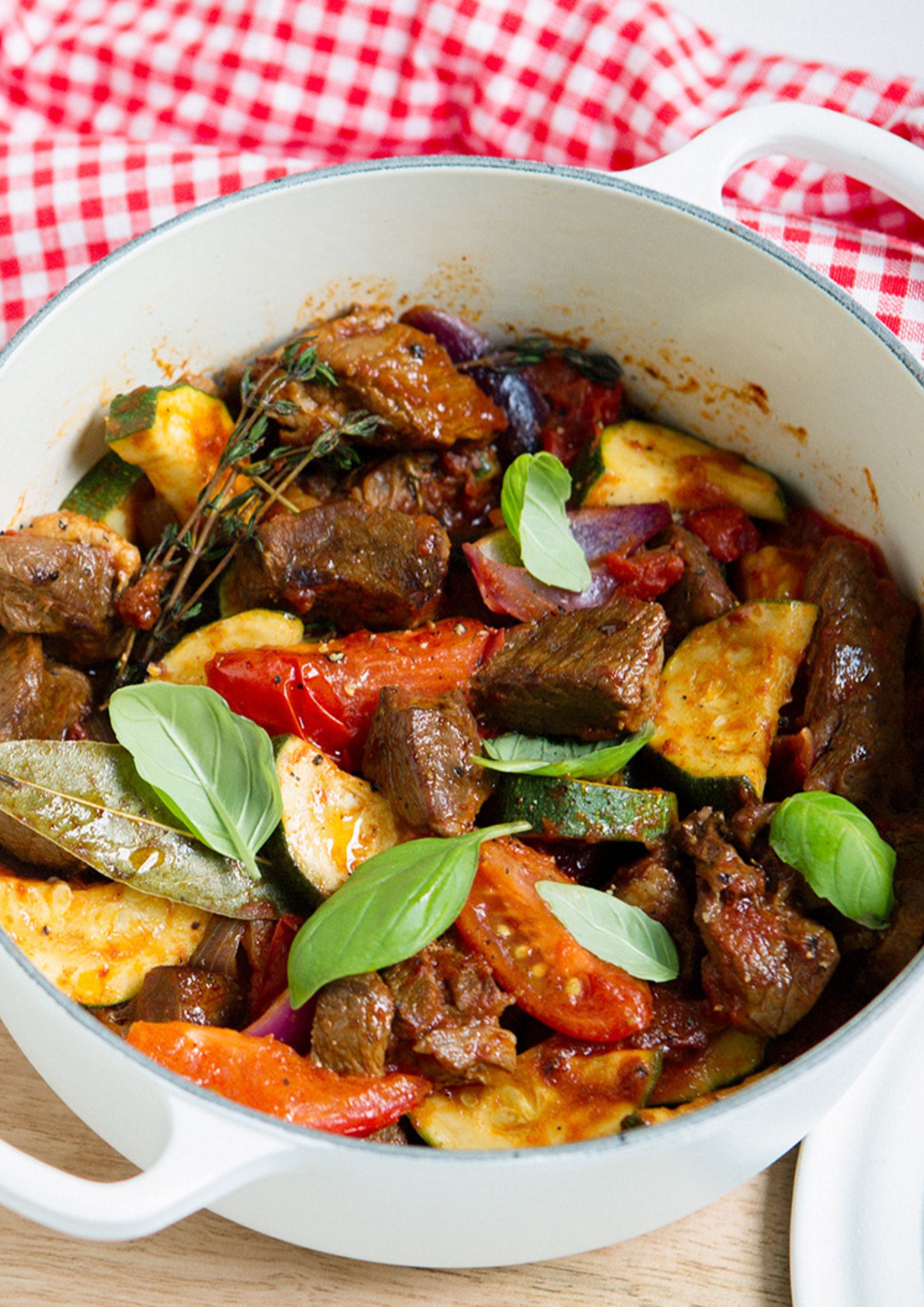 Deze klassieke Italiaanse ‘Cacciatore’ (jagersstijl) stoofpot krijgt een bijzondere twist door het gebruik van premium Iers rundvlees. Het malse vlees, dat zijn unieke smaak dankt aan het Ierse grasgevoerde systeem, vormt de perfecte basis voor dit hartverwarmende gerecht. De combinatie van verse kruiden, rode wijn en zongerijpte tomaten creëert een rijke, mediterrane smaakbeleving.