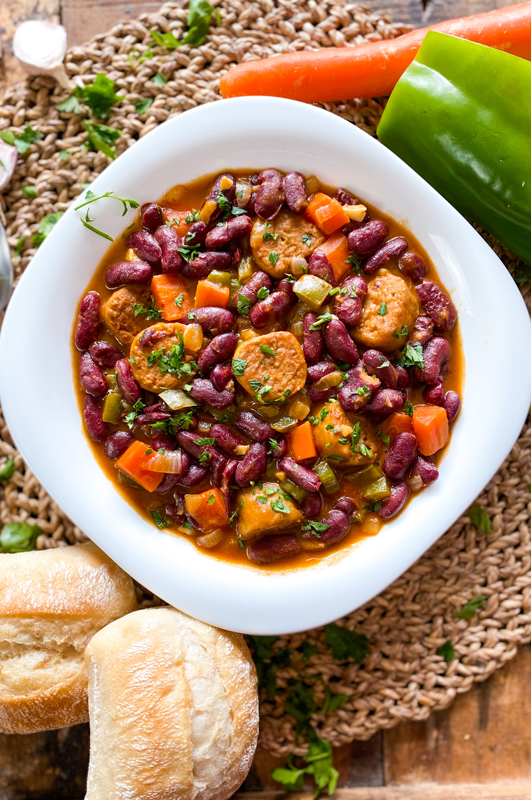 Deze hartverwarmende stoofpot combineert de rijke smaken van de Spaanse keuken met zachte kidneybonen en …