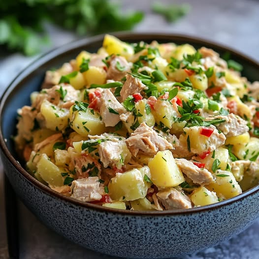 Stel je een verrukkelijke salade voor die perfect balanceert tussen romige aardappelen, ziltige tonijn en …