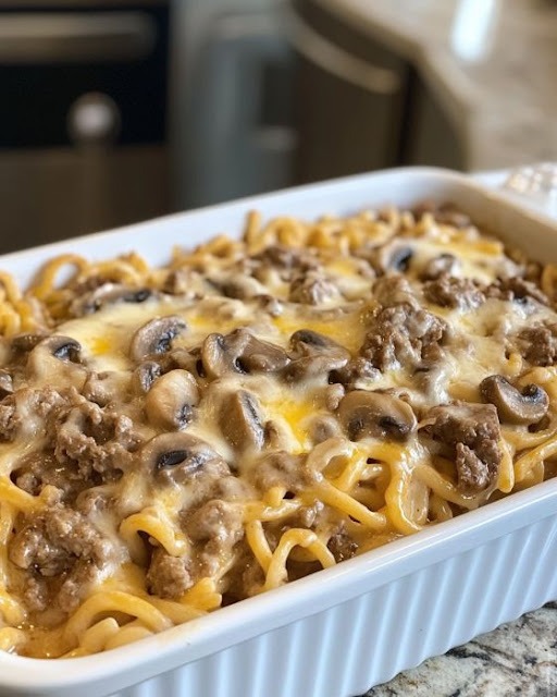 Smakelijk eten en geniet van deze heerlijke Beef Tetrazzini Casserole!
