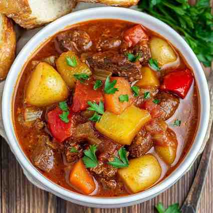 - 700 g rundvlees (bij voorkeur schouder), in 2×2 cm blokjes