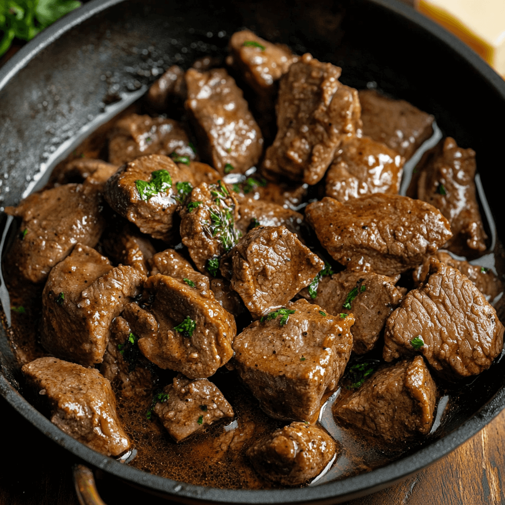 - Voeg het vlees terug in de pan.