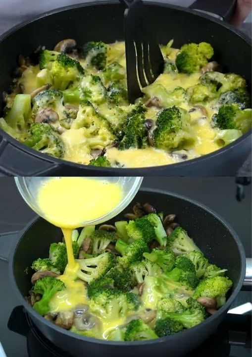 Word je ook nooit moe van een gerecht dat in een handomdraai op tafel staat en toch vol smaak zit? Deze broccoli met champignons en ei is precies dat: simpel, voedzaam en heerlijk! Fluffy gebakken eieren gecombineerd met goudbruine champignons, knapperige broccoli en gesmolten kaas – een perfecte combinatie. Serveer met knapperige knoflooktoast en een verfrissende knoflook-dille yoghurtsaus voor een complete maaltijd die je binnen 30 minuten op tafel hebt. Dit is comfort food die je elke dag wilt eten!
