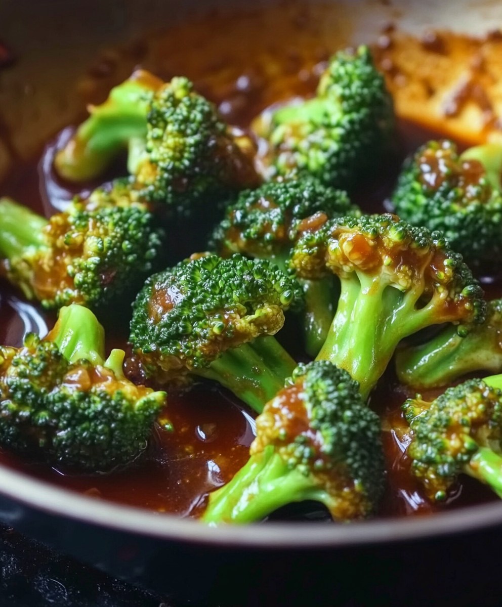 Dit recept van broccoliroosjes in een glanzende, rijke bruine saus is zowel eenvoudig als smaakvol. De combinatie van het levendige groen van de broccoli en de diepe, rijke tinten van de saus zorgt voor een heerlijk gerecht dat zowel visueel als qua smaak tot de verbeelding spreekt. Het gerecht is perfect als bijgerecht of als lichte maaltijd en roept een gevoel van frisheid en warmte op.