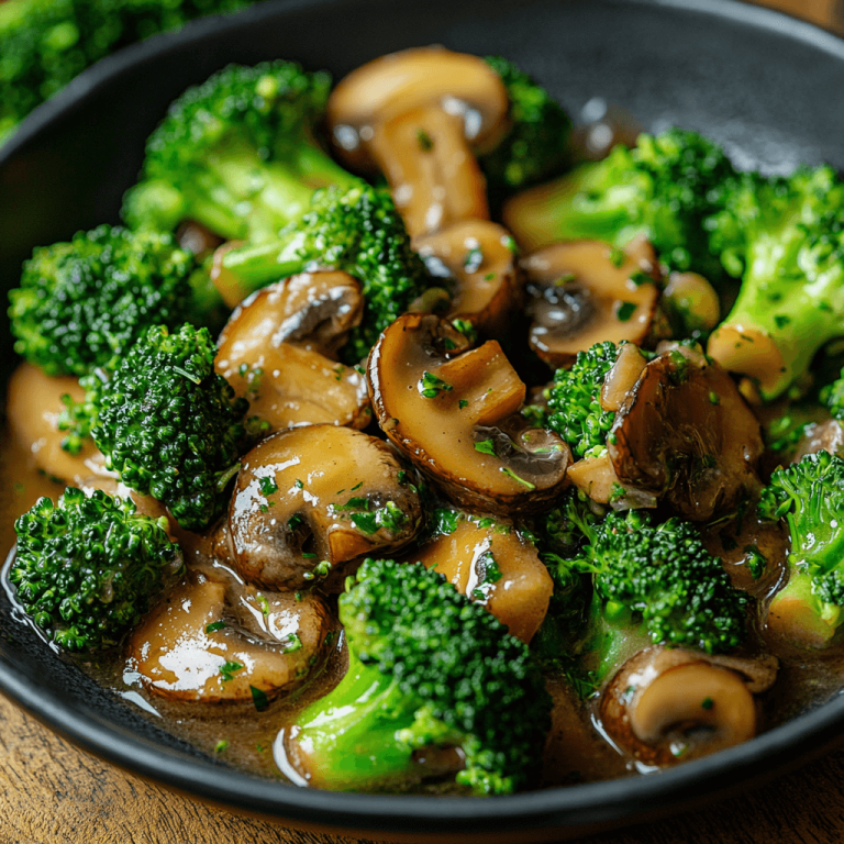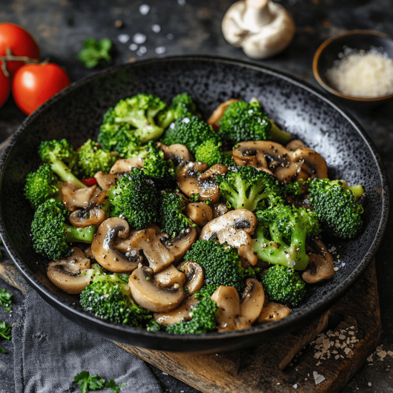 Een verrassend smaakvolle combinatie van knapperige broccoli en sappige champignons in een rijke knoflooksaus, geserveerd …