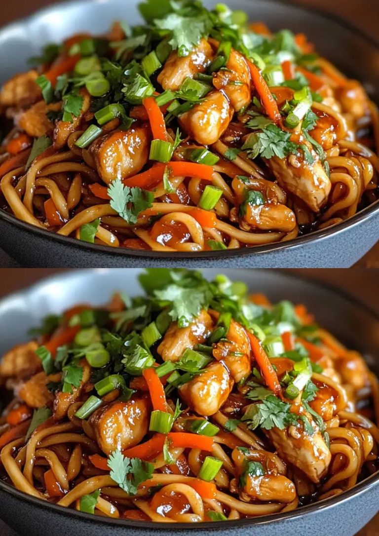Dit verfijnde noedelgerecht combineert malse kip met knapperige groenten en een aromatische saus tot een …
