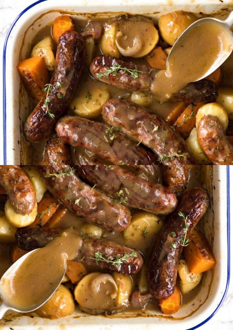 De worstschotel met aardappelen en jus is een traditioneel en hartverwarmend gerecht dat een perfecte …