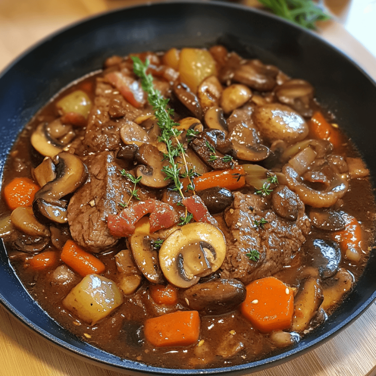 Een Culinaire Klassieker Dit traditionele stoofgerecht combineert de rijke smaken van rundvlees, spek en paddenstoelen …