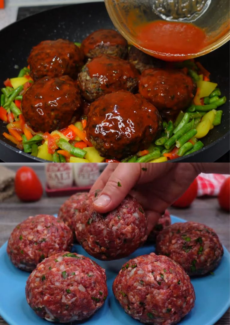 Een Rijke Familietraditie op Tafel Dit hartverwarmende gerecht combineert sappig gekruid gehakt met seizoensgroenten voor …