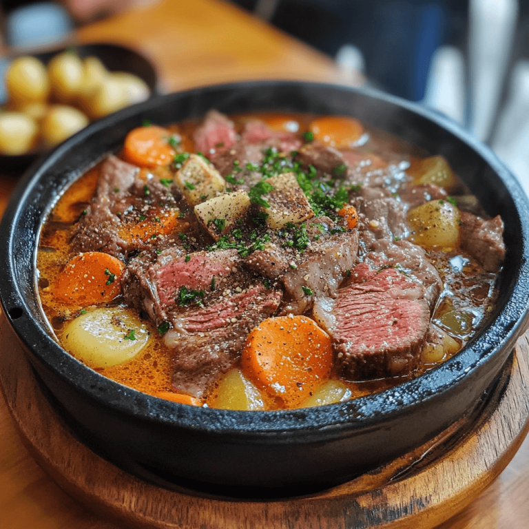 Een klassiek stoofgerecht waar het vlees urenlang suddert tot het boterzacht is, geserveerd met fluweelzachte …