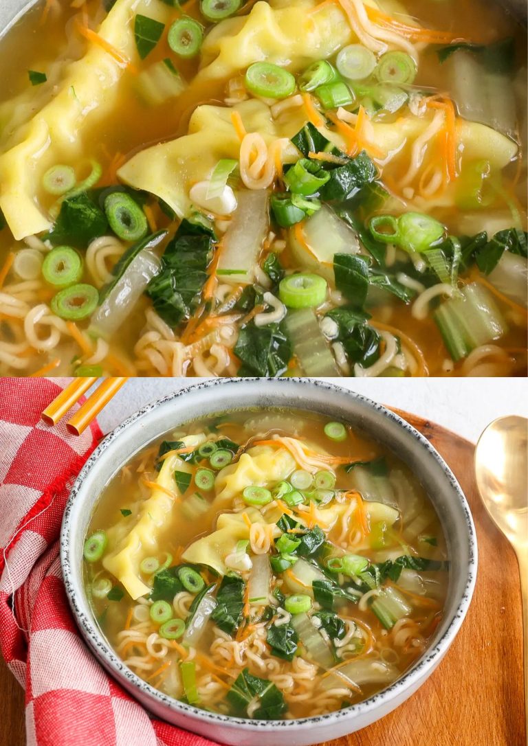 Deze dumpling soep is een heerlijke, lichte maar voedzame maaltijd met hartige dumplings, knapperige groenten …