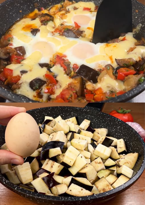 Aubergines transformeren in dit recept tot een onweerstaanbaar gerecht dat zelfs de grootste groentesceptici overtuigt! Dit mediterrane geïnspireerde gerecht combineert de zachte, romige textuur van gebakken aubergine met een kleurrijke mix van verse groenten, gekroond met gesmolten kaas en perfect gebakken eieren. Het is een feest van smaken en kleuren dat niet alleen je smaakpapillen prikkelt, maar ook boordevol voedingsstoffen zit. Of je nu op zoek bent naar een gezond weekendontbijt, een lichte lunch of een vullend vegetarisch diner, dit veelzijdige recept past bij elke gelegenheid en laat je genieten van groenten op een compleet nieuwe manier.