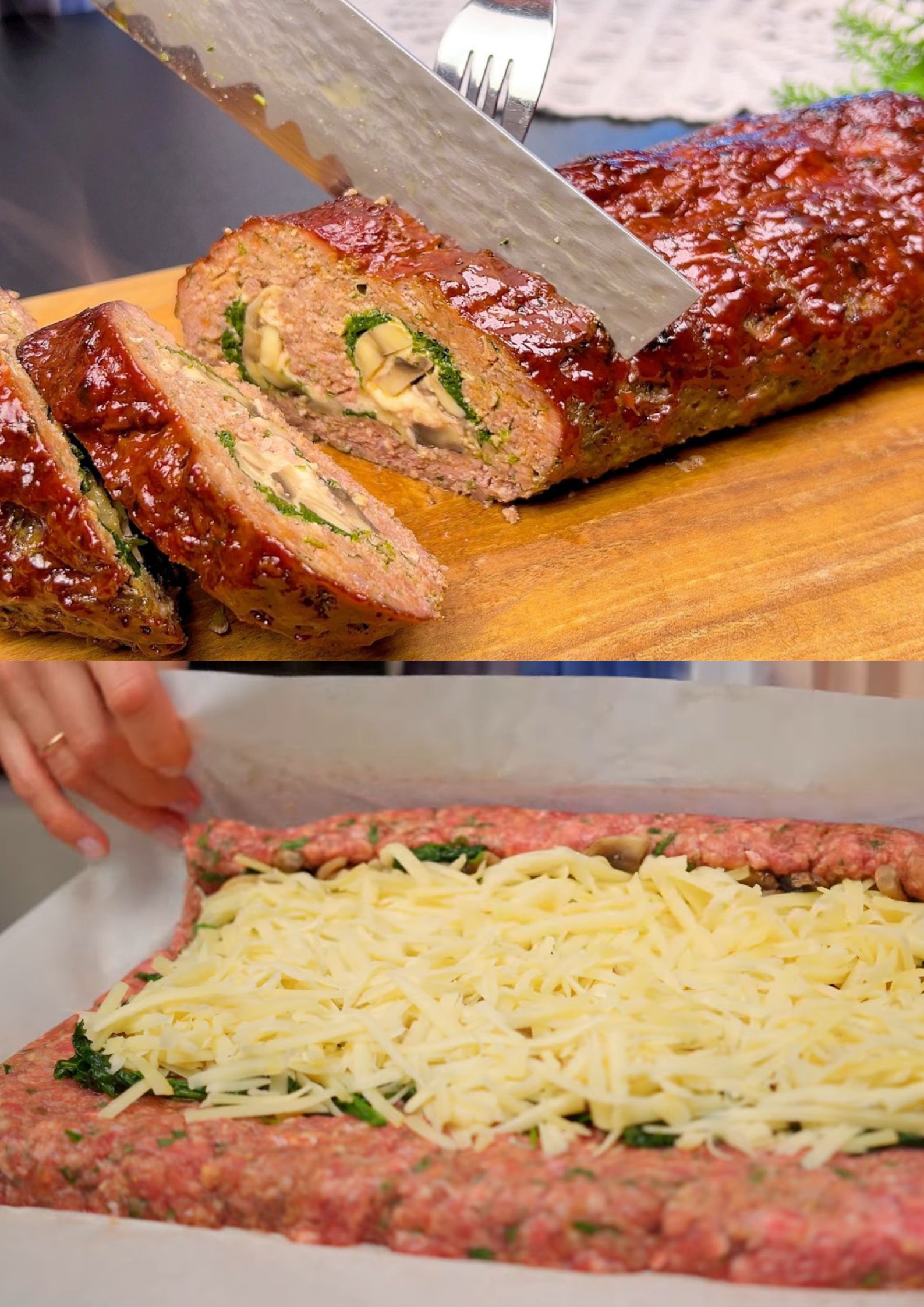 - Dek af met de rest van het gehaktmengsel en vorm tot een brood.