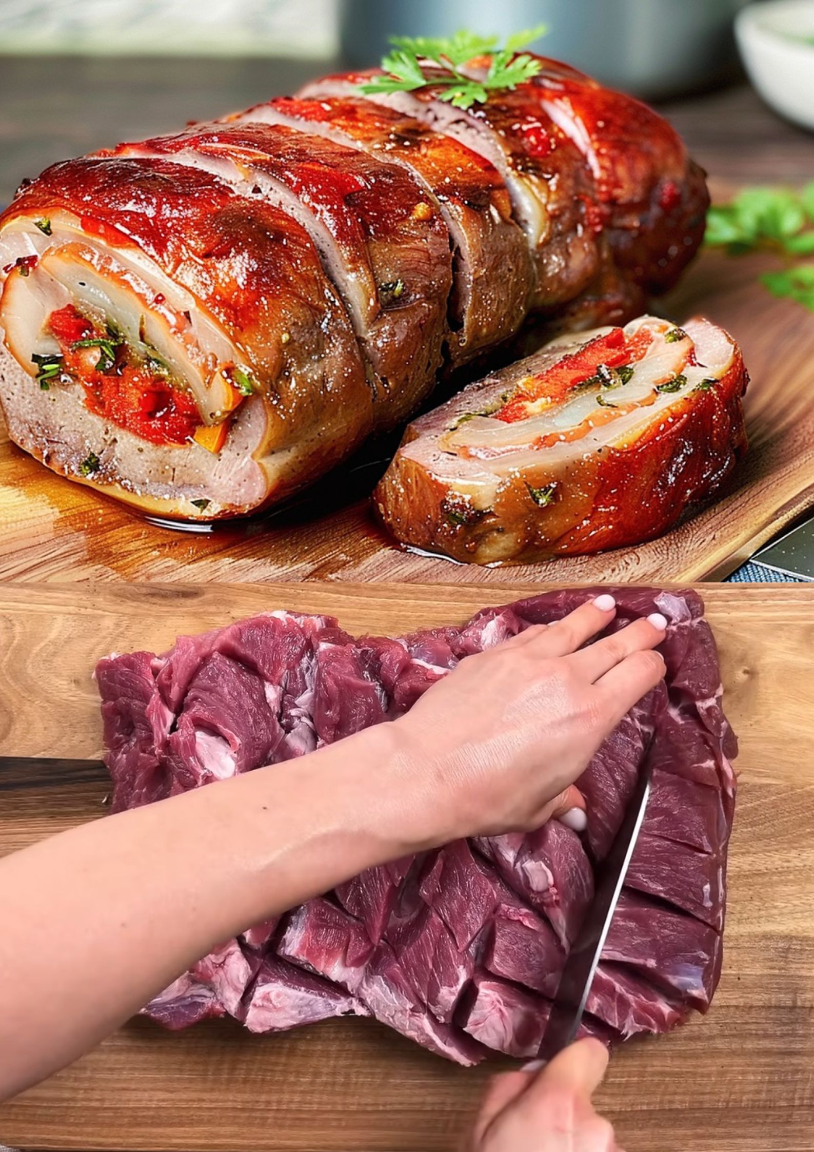 Dit spectaculaire kerstgerecht combineert de sappige textuur van varkensnek met een verfijnde vulling en een zoet-pittige glazuur. Een gerecht dat niet alleen indrukwekkend oogt, maar ook betaalbaar en relatief eenvoudig te bereiden is.