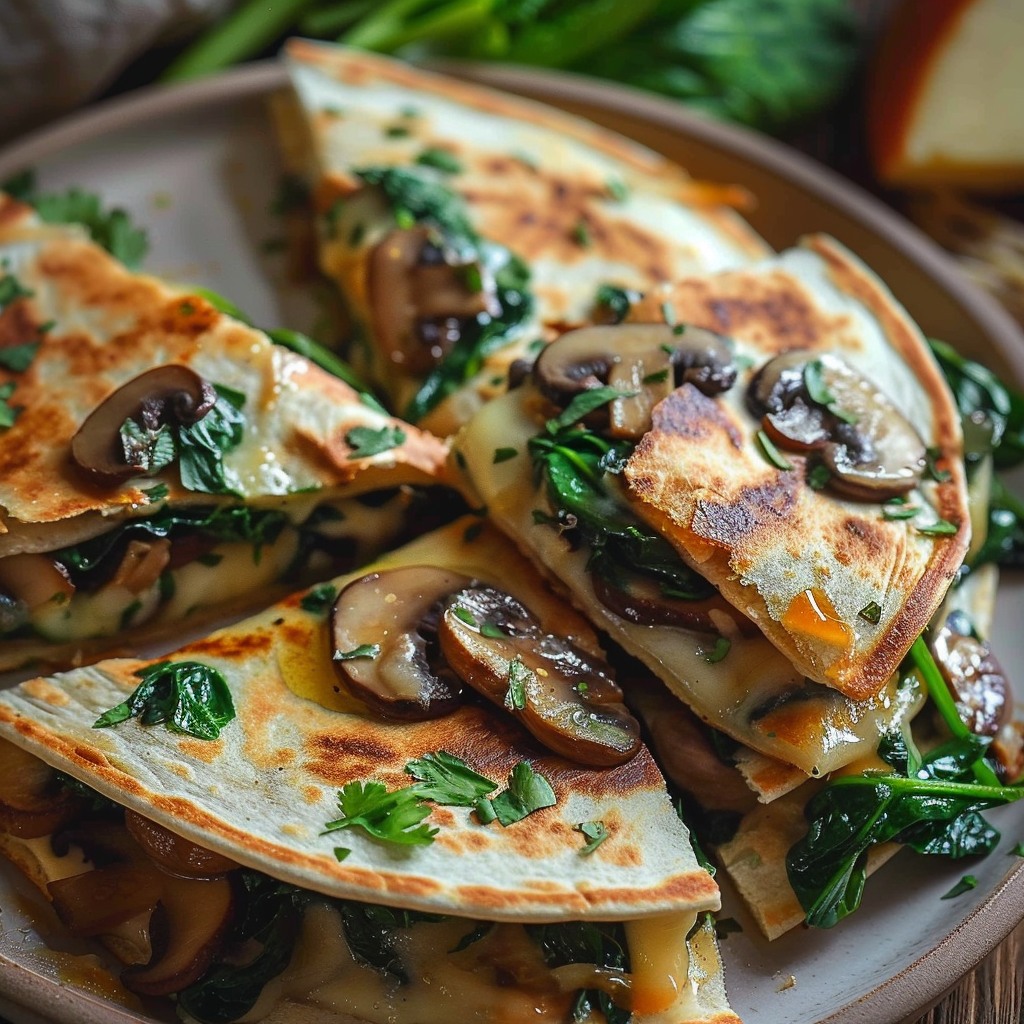 Deze Gebakken Spinazie-Champignonquesadilla’s zijn meer dan een recept – het is een culinaire ervaring die smaak, textuur en creativiteit combineert. Perfect voor lunch, diner of als tussendoortje, dit gerecht zal zeker harten veroveren.