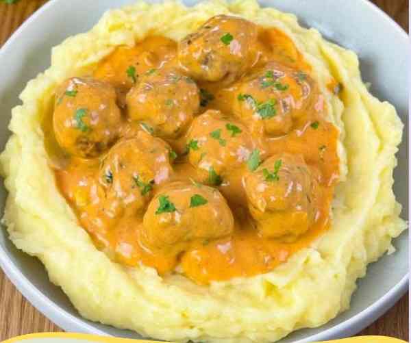 Dit gerecht is meer dan zomaar een maaltijd – het is een eerbetoon aan de klassieke huiskeuken. Sappige gehaktballen in een romige saus, vergezeld van fluweelzachte aardappelpuree, vormen een combinatie die troost en smaak perfect verenigt.