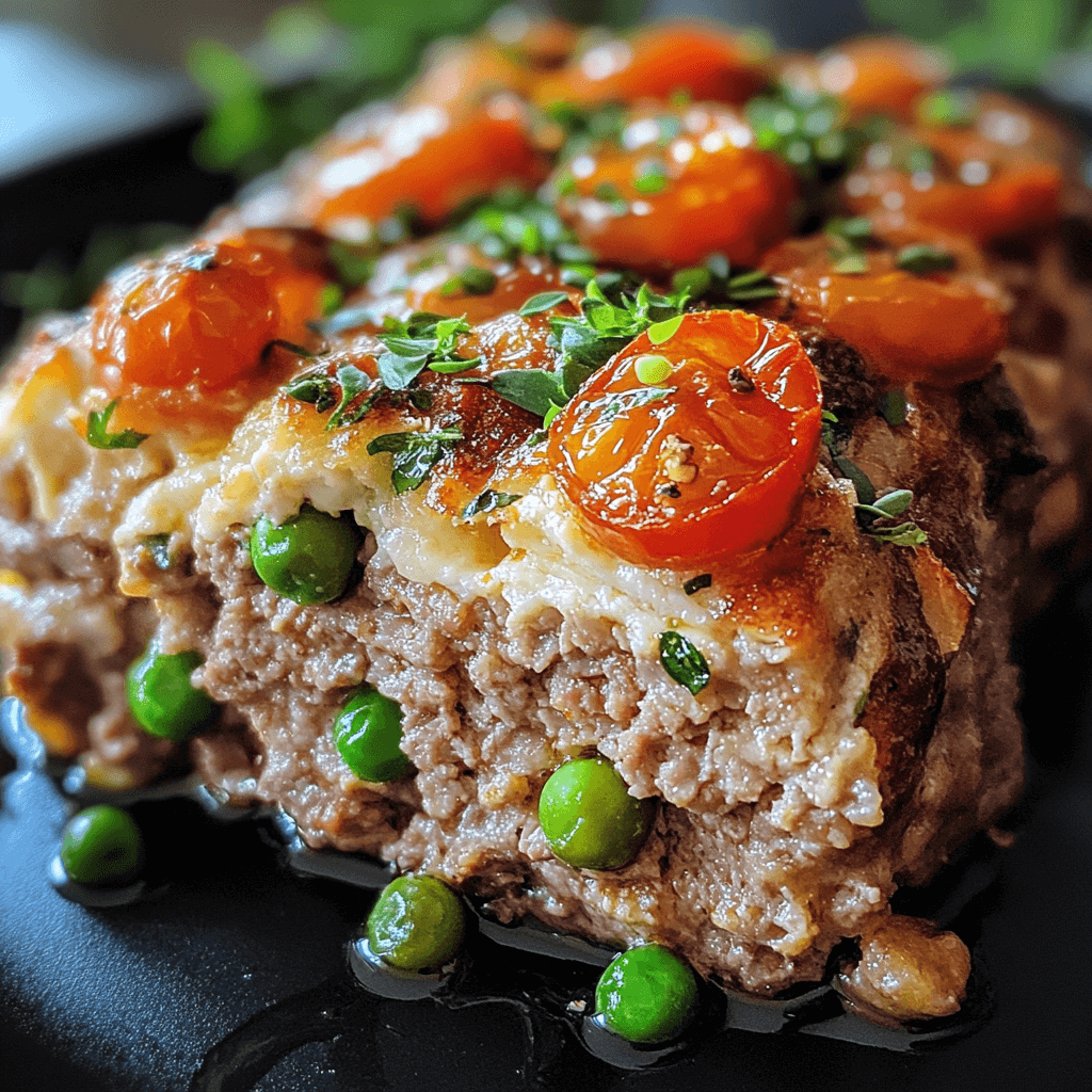 Dit creatieve gehaktbrood combineert sappig gekruid gehakt met een kleurrijke omeletlaag voor een verrassende presentatie.