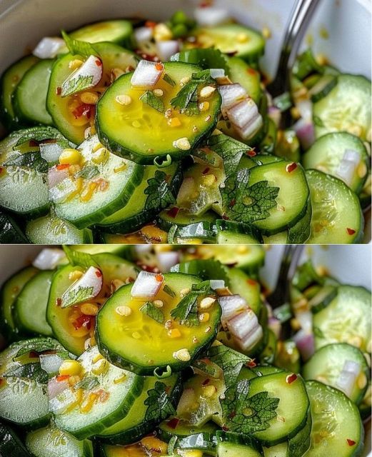 Geniet van deze verrassende en verfrissende komkommersalade!