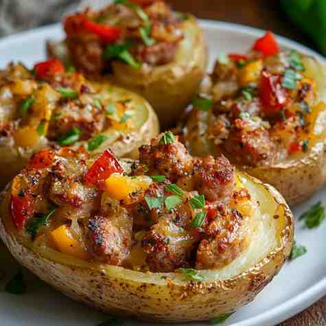 Gevulde aardappelen zijn meer dan alleen een maaltijd – het is een culinaire ervaring die herinneringen oproept aan gezellige familiediner en zondagse maaltijden. Dit recept combineert de romige textuur van aardappelen met de kruidige smaak van worst en de zoete tinteling van paprika’s, wat resulteert in een onweerstaanbaar gerecht dat zowel troostrijk als verfijnd is.
