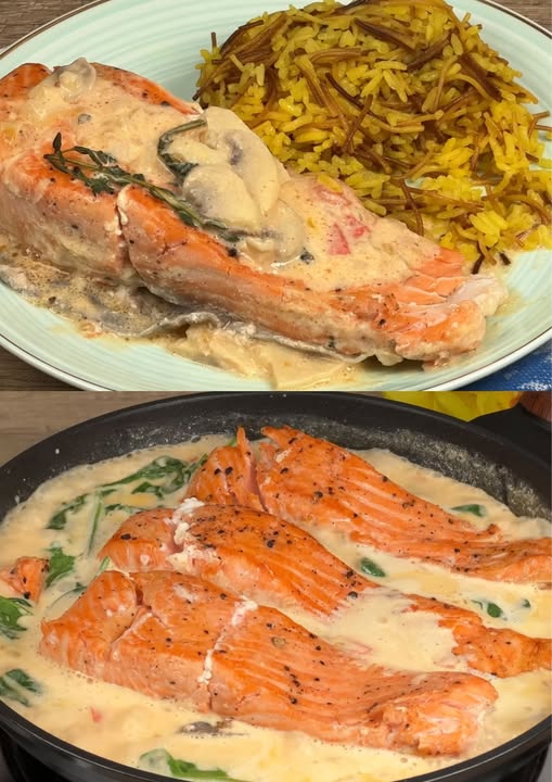De combinatie van knapperige zalm, romige Parmezaanse saus en aromatische rijst creëert een gelaagde smaakervaring die werkelijk betoverend is.