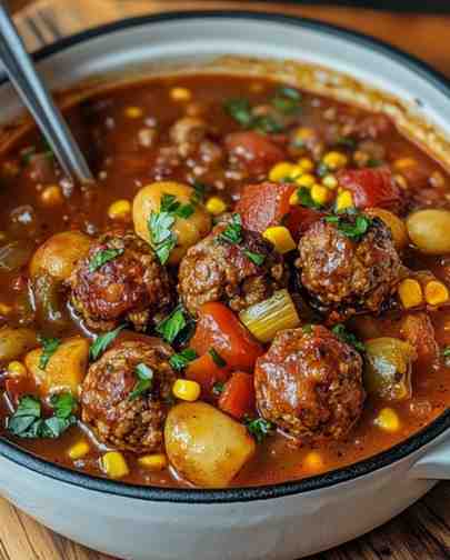 Niets is zo geruststellend als een overheerlijke stoofpot die je hele gezin om de tafel verzamelt. Deze gehaktballetjesstoofpot combineert de rijke smaken van gekruid gehakt, verse groenten en een romige saus tot een onweerstaanbare maaltijd die zowel vullend als voedzaam is.