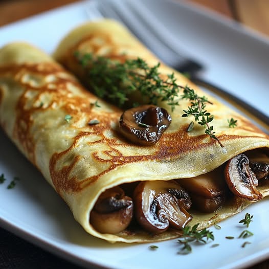 Ontdek de ultieme smaakbeleving met deze verrukkelijke hartige pannenkoeken, gevuld met een romige champignonmengeling die je smaakpapillen zal doen juichen. Een gerecht dat de perfecte balans vindt tussen verfijnde textuur en diepe, aardse smaken.