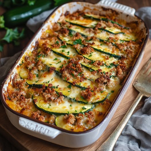 Geniet van deze heerlijke en voedzame courgette- en kipgehaktgratin!