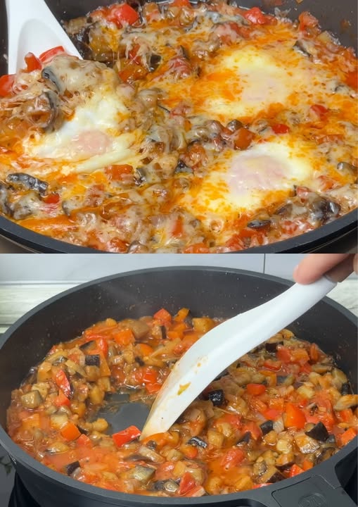 Een gezonde, kleurrijke maaltijd vol groenten en proteïne. Aubergines zijn rijk aan vezels en antioxidanten, terwijl de eieren zorgen voor een goede proteïnebron. Perfect voor een licht ontbijt of een verrassend diner.