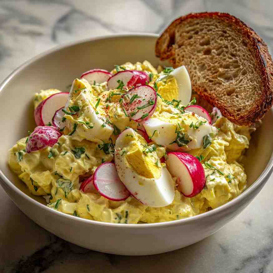 Smakelijk eten en geniet van deze heerlijke eiersalade!