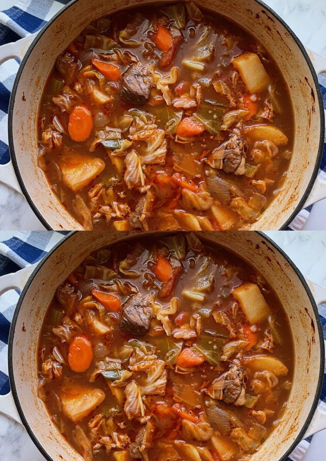 Deze stoofpot is niet zomaar een doorsnee gerecht. Het is een verzameling van zorgvuldig geselecteerde ingrediënten die samen een symphonie van smaken creëren. Van de malse rundvleesblokjes tot de romige aardappelen en knapperige groenten – elk ingrediënt draagt bij aan een onvergetelijke maaltijd die zowel voedzaam als hartverwarmend is.