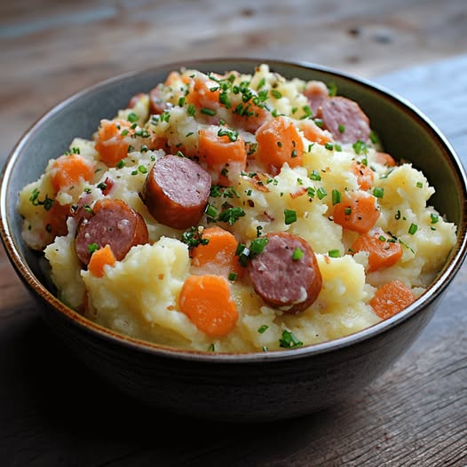 Traditioneel wordt rookworst gebruikt, maar ook andere gerookte of verse worsten werken goed.