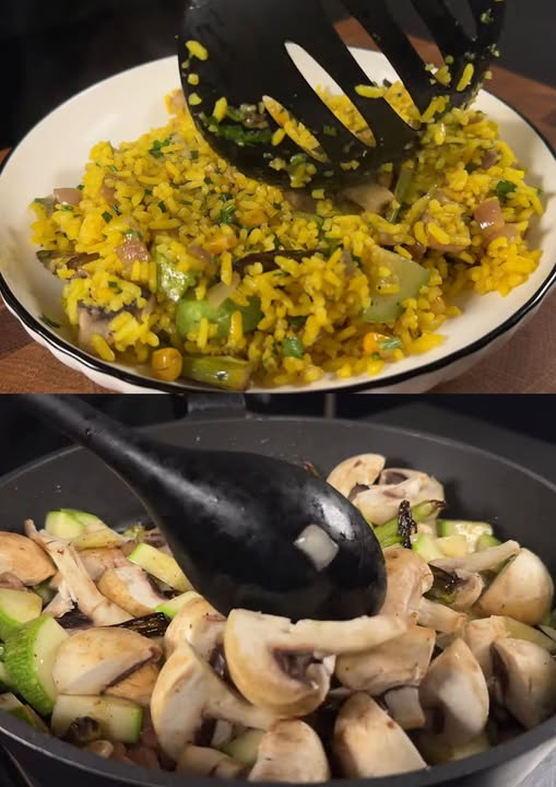 De kurkuma in de rijst is een krachtige ontstekingsremmer en geeft je maaltijd een mooie goudgele kleur. Door verse kruiden zoals peterselie en dille toe te voegen, krijg je extra vitamines en een frisse smaak zonder onnodige calorieën.
