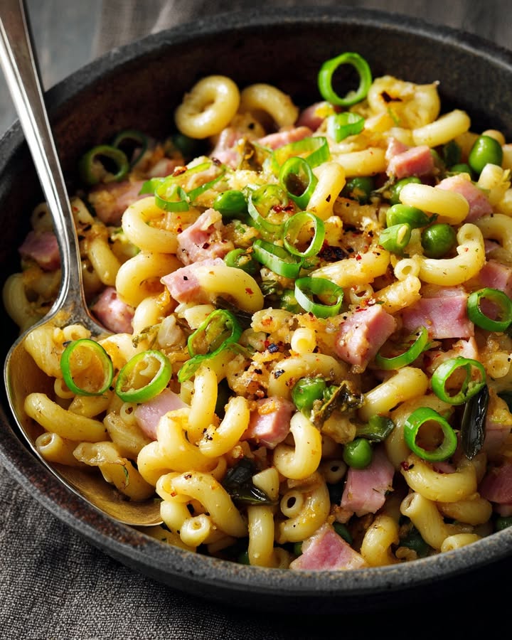 - Combineer met macaroni: Schep de gekookte macaroni in de pan. Roer alles goed door zodat de pasta de smaken opneemt.