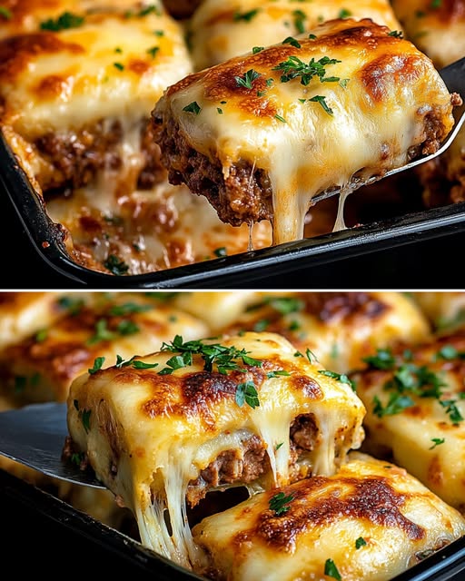 Smakelijk eten met deze heerlijke kaasachtige aardappel- en rundvleesbroodjes!