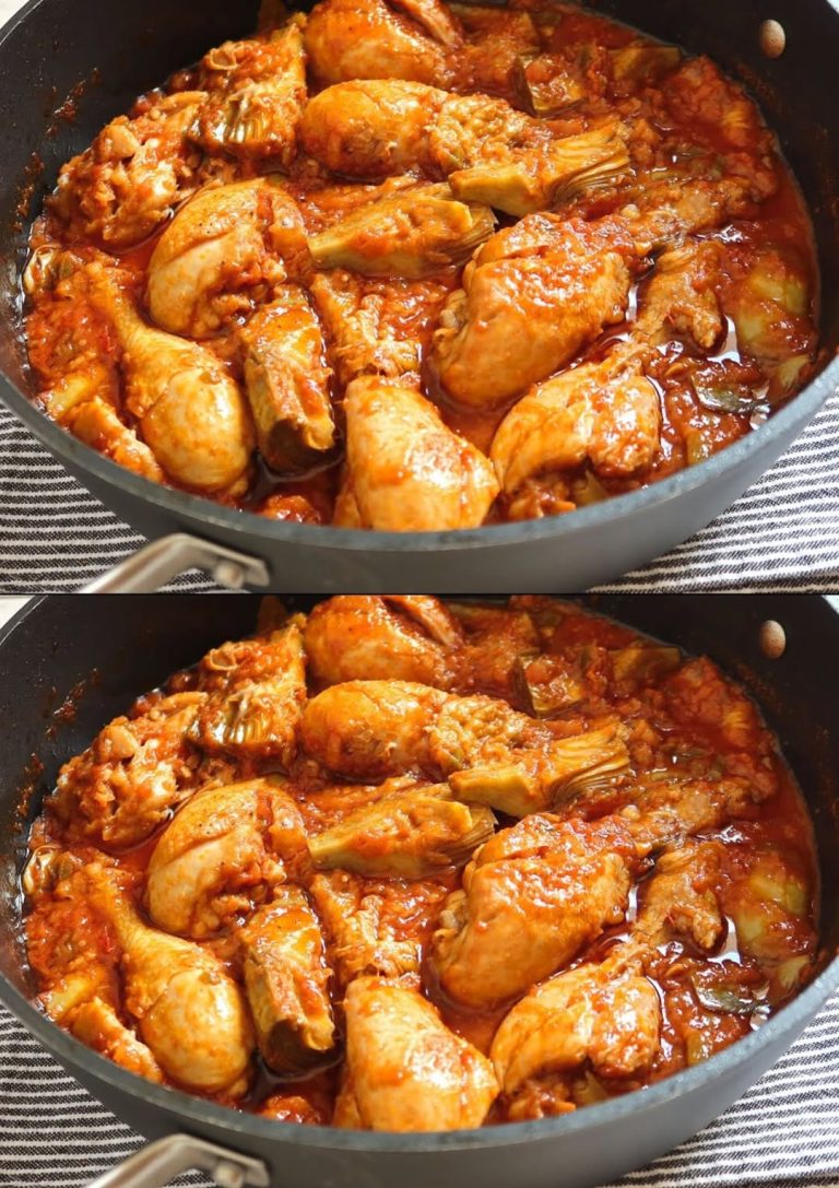 In de zonnige keukens van de Middellandse Zee schuilt een geheim: de kunst van eenvoudige, smaakvolle gerechten die met weinig ingrediënten maximale smaak weten te creëren. Dit kip-met-tomaat recept is daarvan het perfecte voorbeeld – een gerecht dat de essentie van mediterrane kookkunst overbrengt.