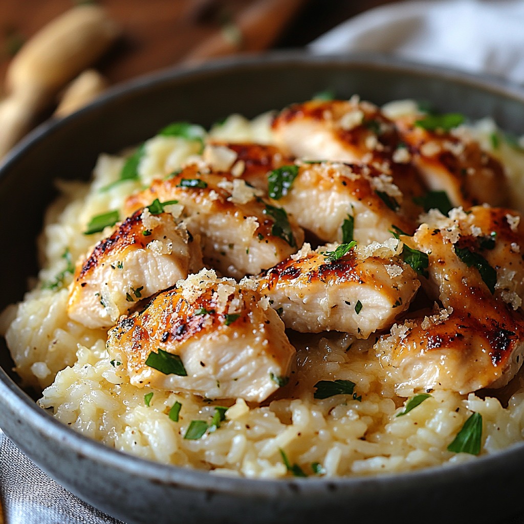 Geniet van deze heerlijke Kip Scampi met Knoflook Parmezaanse Rijst – een ware culinaire verwennerij!