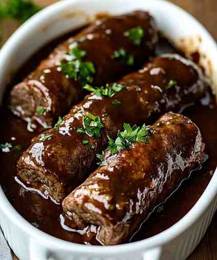 Diep geworteld in de rijke culinaire traditie van Midden-Europa, vertegenwoordigen deze runderrollades meer dan alleen een maaltijd. Het is een gerecht dat familiegeschiedenissen vertelt, herinneringen oproept aan zondagse diners en de warmte van huiselijke kookkunst symboliseert. Elke rollade is een kunstwerk van smaak, textuur en culinaire erfenis.