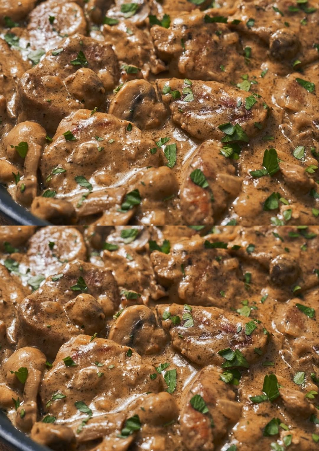 Varkenshaas in een rijke, romige saus is een gerecht dat de essentie van comfortabel eten perfect vangt. Deze klassieke bereiding combineert de malse textuur van varkenshaas met een weelderige saus vol diepe, aardse smaken van paddestoelen en een vleugje cognac.