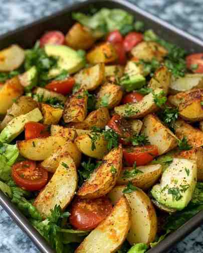 Dit gerecht is meer dan een simpele maaltijd – het is een viering van textuur, smaak en verse ingrediënten. Onze knapperige gebakken aardappelen gecombineerd met een verfrissende saladekom transformeren een traditioneel bijgerecht in een volwaardige, voedingsrijke maaltijd.