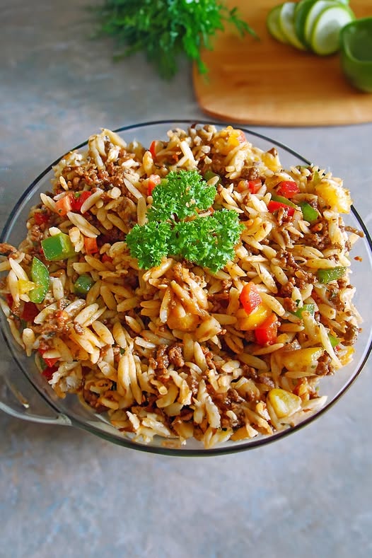 Kritharaki salade is een verrukkelijk Grieks gerecht dat de essentie van mediterrane keuken perfect belichaamt. Deze rijstnoedelsalade combineert de rijke smaken van gekruid gehakt, verse groenten en aromatische kruiden in een gerecht dat zowel veelzijdig als voedzaam is. Oorspronkelijk afkomstig uit de traditionele Griekse keuken, is dit recept een geweldige manier om eenvoudige ingrediënten te transformeren in een maaltijd vol smaak en textuur.